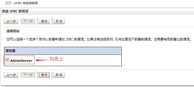 点击【完成】,这样WebLogic就会创建一个新的JDBC数据源,如下图所示: