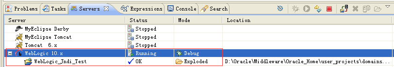 将测试项目部署到WebLogic服务器中运行,如下图所示: