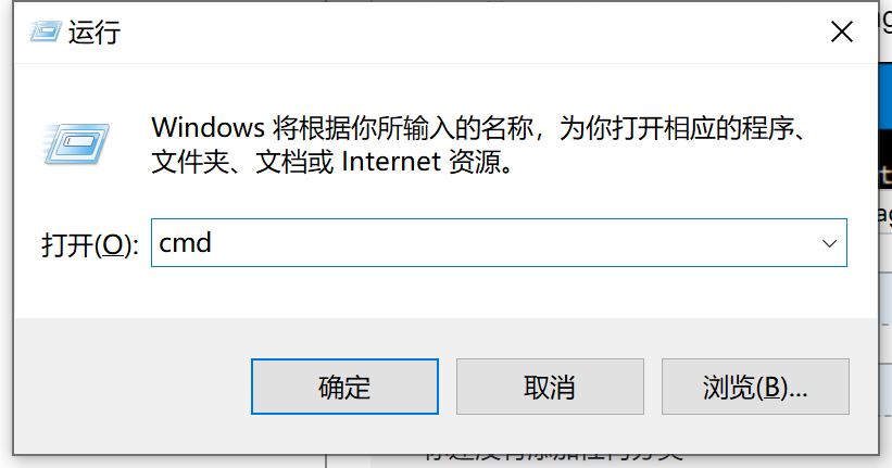 在Windows中,按Windows + R。在“运行”窗口中,在搜索框中键入“ cmd”,然后按“确定”按钮。