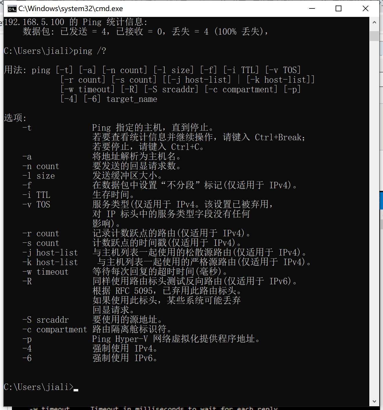 但是,如果您对它们感到好奇,只需在命令提示符下键入“ ping /?”即可查看列表。