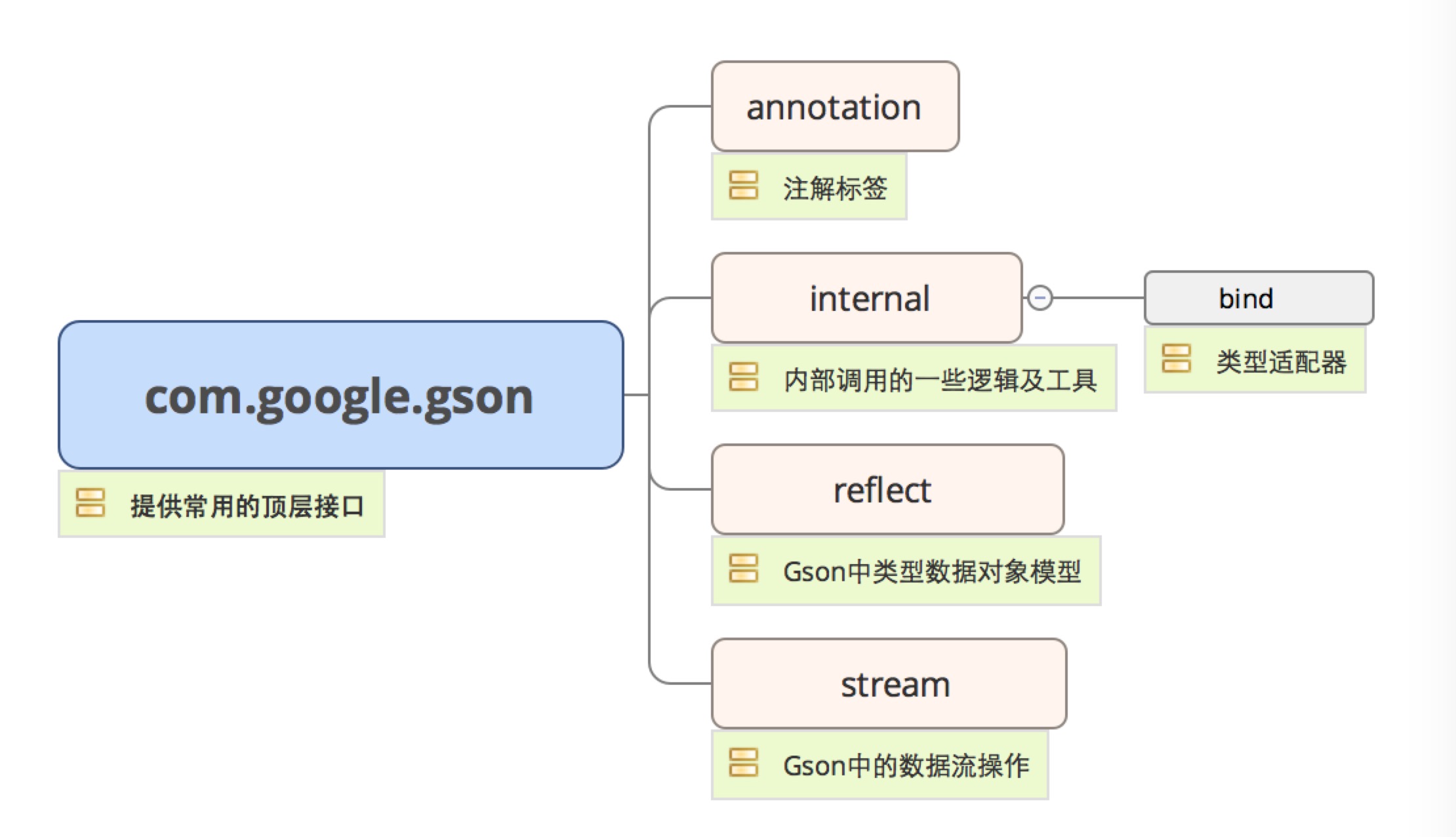 各位看官是否被惊艳到?是的,使用Gson就是可以这么容易的转换Json对象。虽然我们还没开始阅读Gson的源代码,但是我们可以从传入的参数简单看出,在Gson的实现中,一定是大量用到了Java的反射注入技术。我们看下Gson的分包: