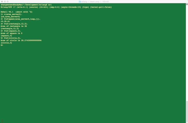 可以看到,我使用的Erlang的版本是17.退出可以用键盘组合按键^G退出shell的Erlang运行环境。