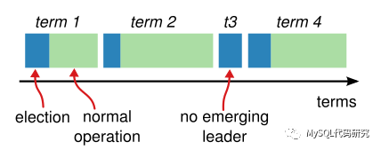 Raft将时间划分为连续的时间段,称为Term。 Term是指从一次Leader选举开始到下一次Leader选举的一段时间。这段时间内只能有一个Leader被选举成功,并负责管理系统或者没有Leader选出。