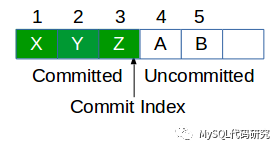 日志队列里有一个重要的位置叫做提交日志的位置(Commit Index)。将日志队列里的日志分为了两个部分:
