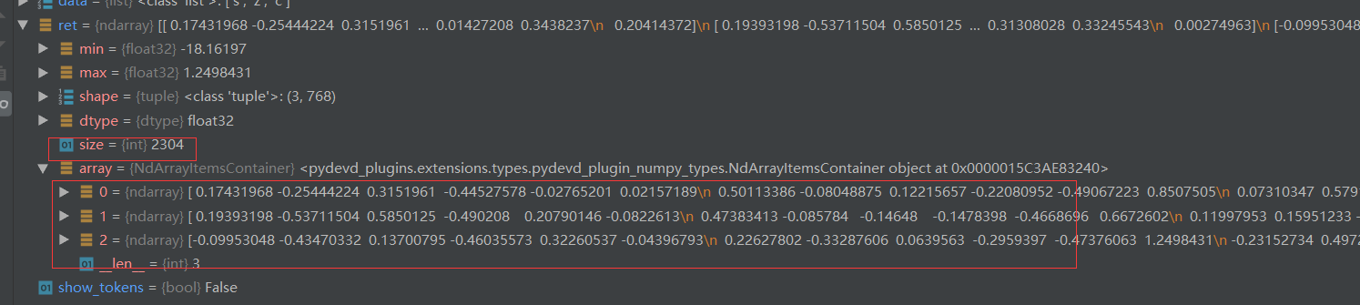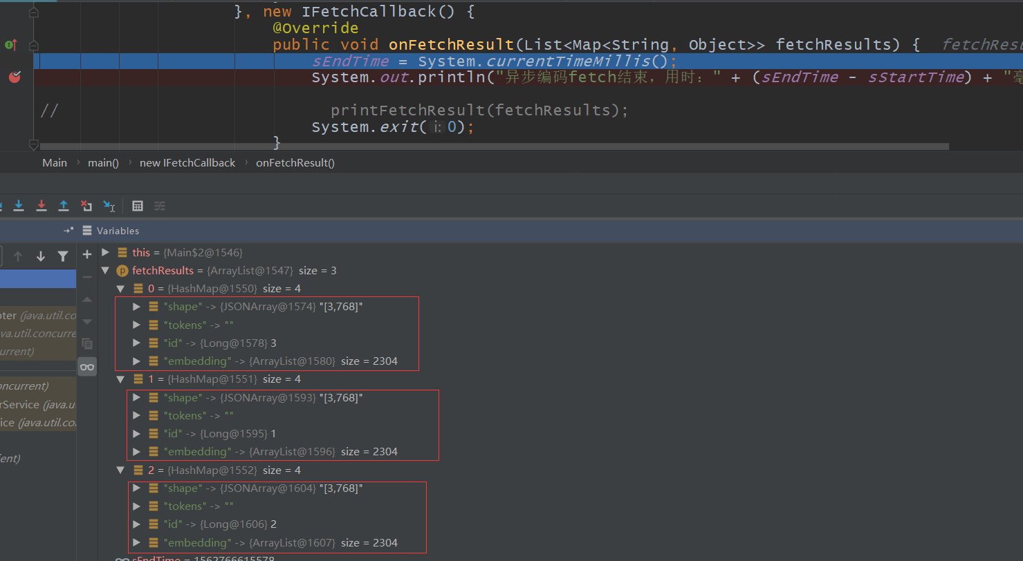 这样,encode的主要任务就完成了,然后把映射里embedding(也就是浮点数列表)、shape、token作为列表返回到外部,就可以了。