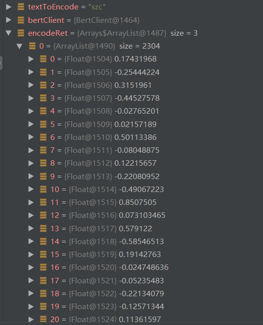 编码相同的字符串“szc”,看一下python版和java版的embedding结果: