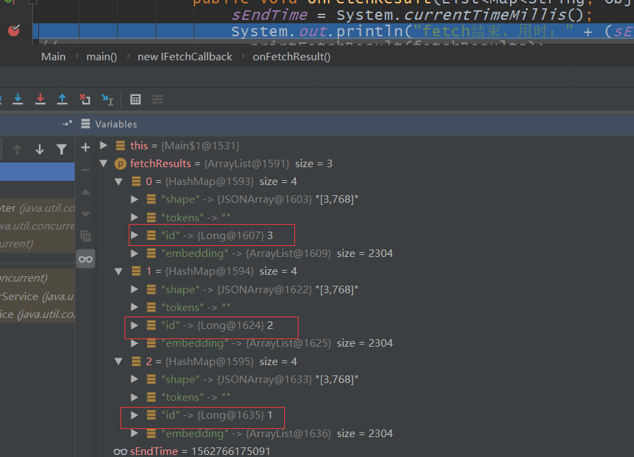 可见,fetch里用到了协程,统一已向服务端发送但没有获取结果的请求获取结果,而fetch_all充其量只是做了一个排序。这样的话,既然是为了实现异步,我们可以用java里的多线程来实现,对应代码如下