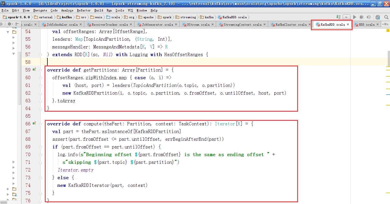 我们知道自定义RDD,需要实现RDD的抽象方法,那KafkaRDD是如何实现的呢?