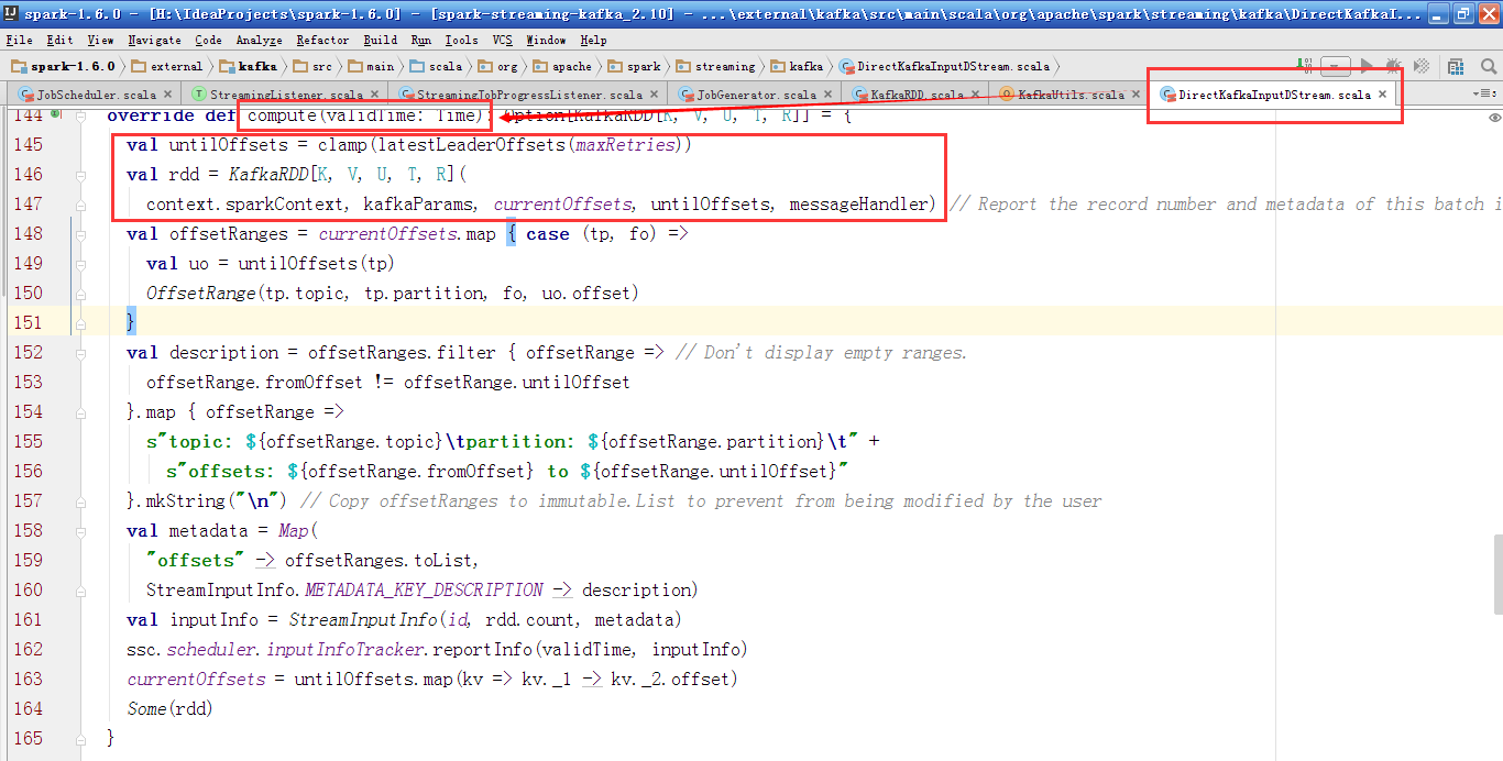 DirectKafkaInputDStream的compute方法生成RDD。