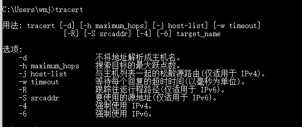 最简单的用法就是 tracert target_name 检测网址经过几个跃点