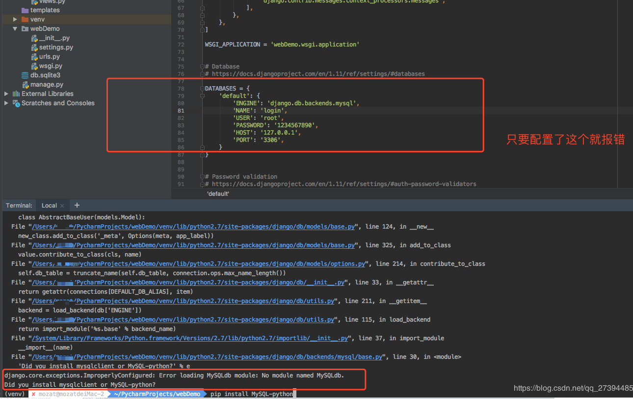 当我在加入mysqldb准备连接mysql的时候,就折腾了好久。