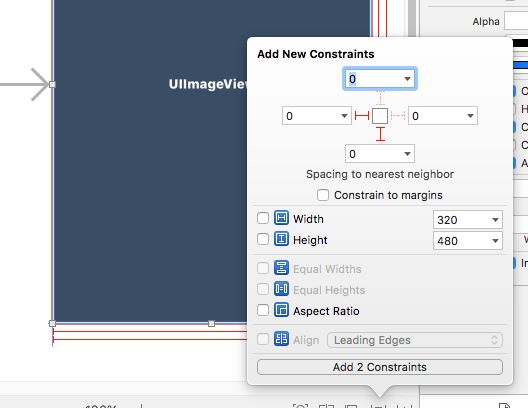 - Pin the image view to the nearest neighbor as shown below. Add the constraints