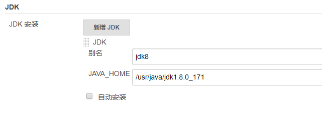 系统管理–>全局工具配置–>配置Maven、JDK和Git实例,在每一节下面单击Add(新增)按钮,然后添加实例的名称和绝对路径。
