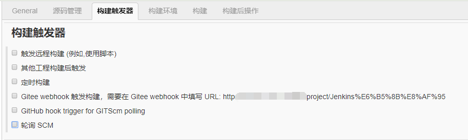这里可以设置触发构建的策略,设置在什么情况下触发构建。由于我们当前构建为手动,所以这里不设置触发选项。