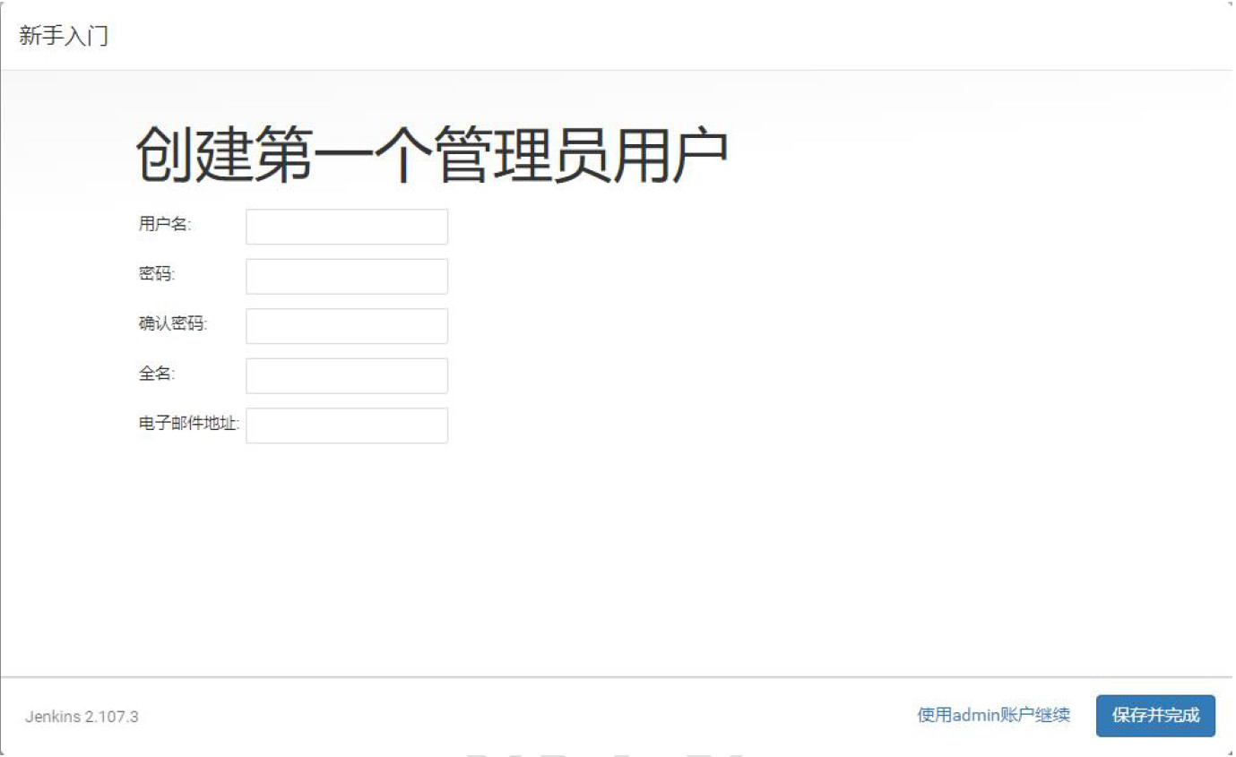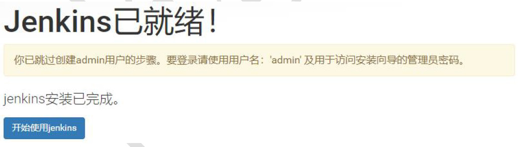 出现Jenkins安装已完成提示,然后我们就可以开始使用Jenkins了。