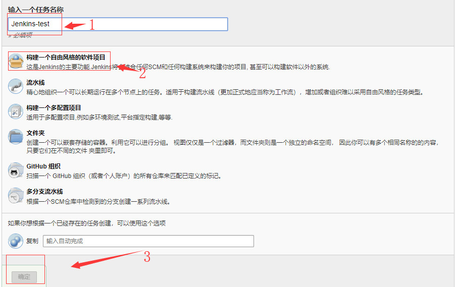 首页点击新建(New Item),输入项目名称,选择构建一个自由风格的软件项目。然后点击OK。