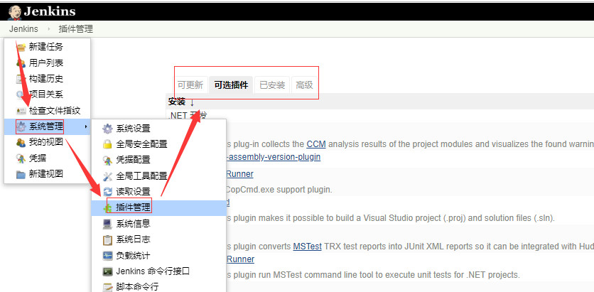 系统管理 -->插件管理 -->可选插件,勾选需要的插件,然后点击直接安装或者下载待重启后安装。