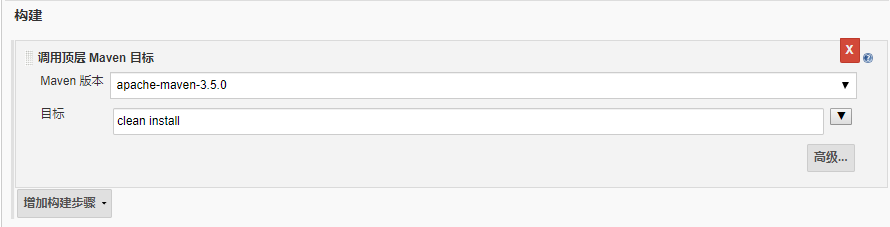 设置构建的方式和执行的命令,当前设置为使用maven构建,构建的命令参数为 clean install。