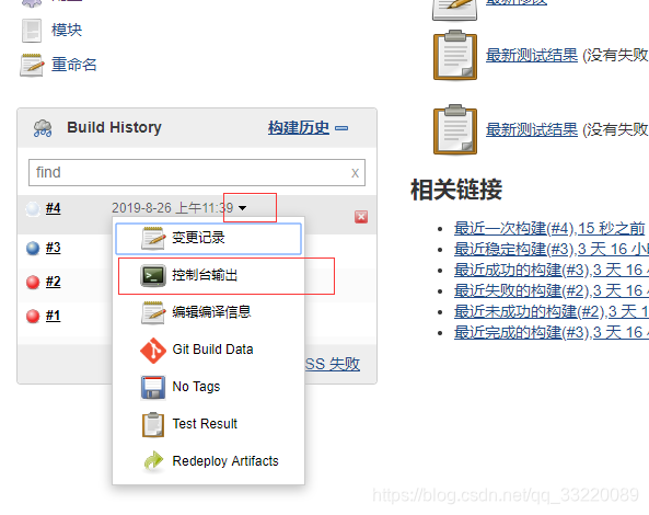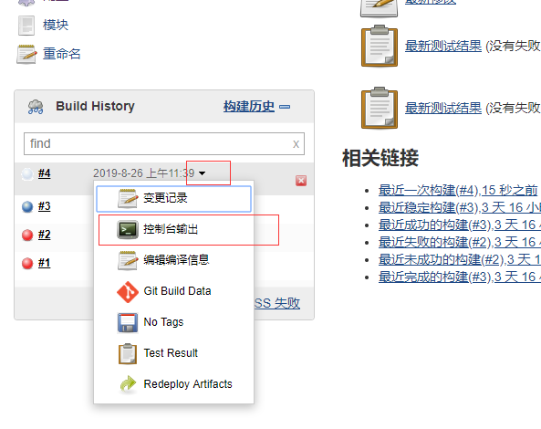 点击立即构建,左下角会出现构建历史,然后找到控制台输出,进入
