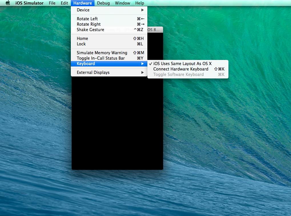 iOS Simulator -> Hardware -> Keyboard -> Connect Hardware Keyboard