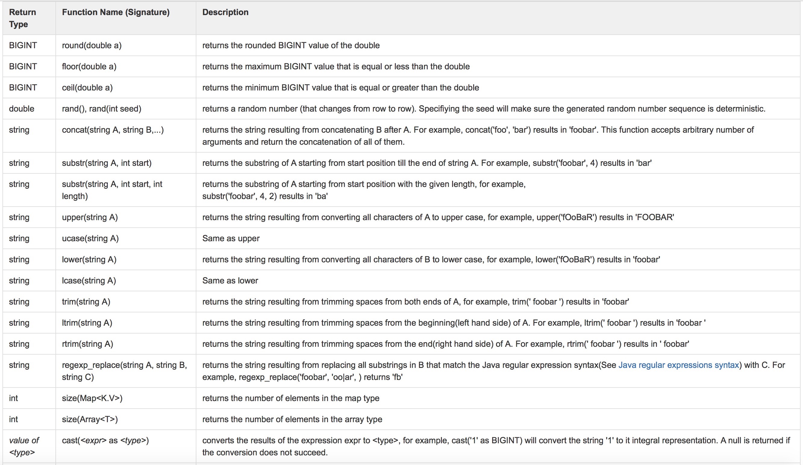 Hive SQL提供了类似于SQL的操作,它的操作对象为表和分区,包括: