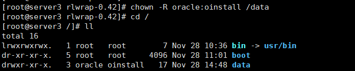 将/data/目录授权给oracle用户,及分配给dba、oinstall用户组。