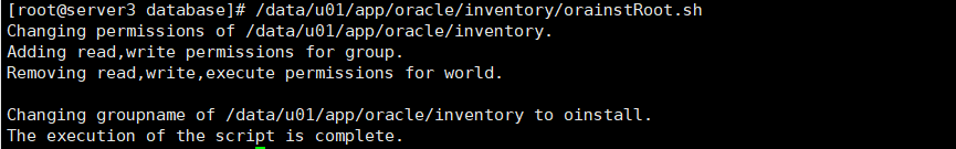 跳出以下提示,表明安装成功,并且切换至root用户执行这两个脚本。