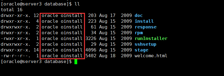 切换至数据库管理软件安装目录,需要注意目录的用户及用户组: