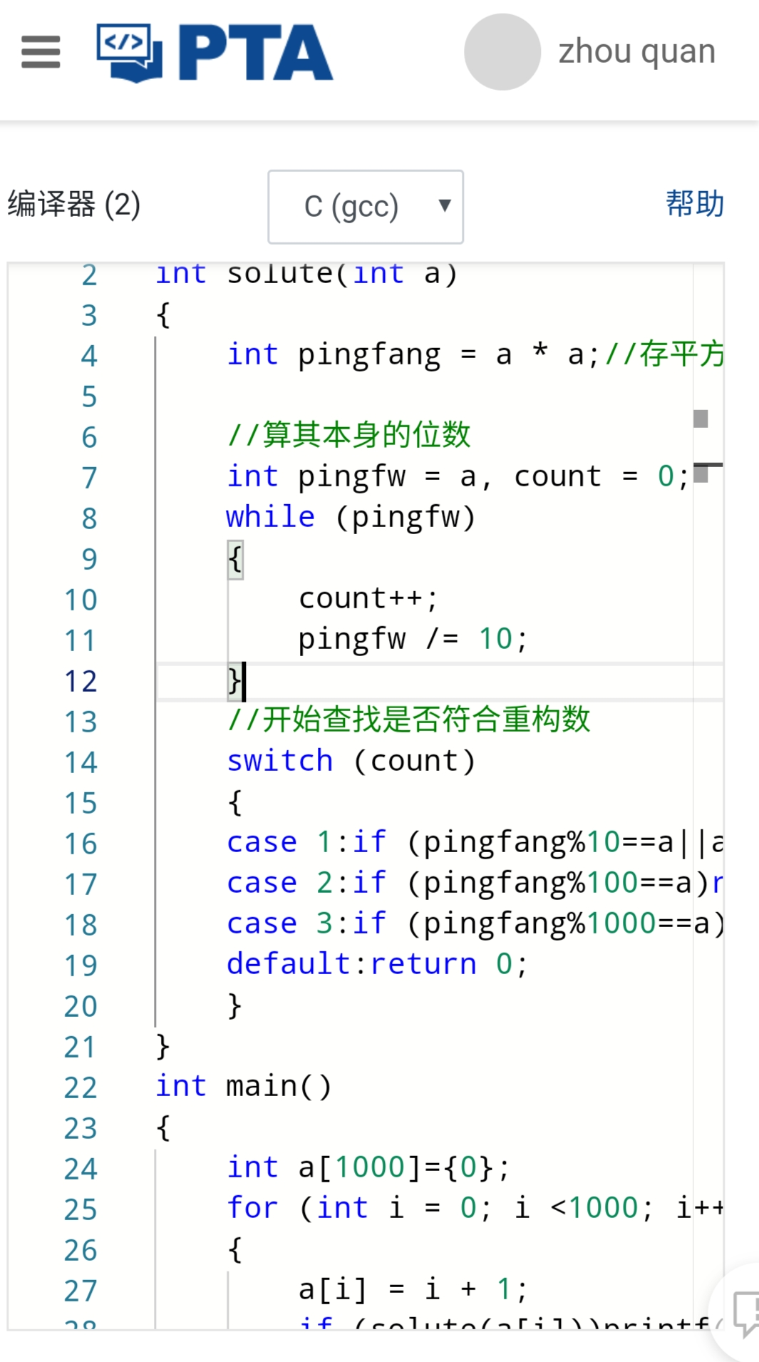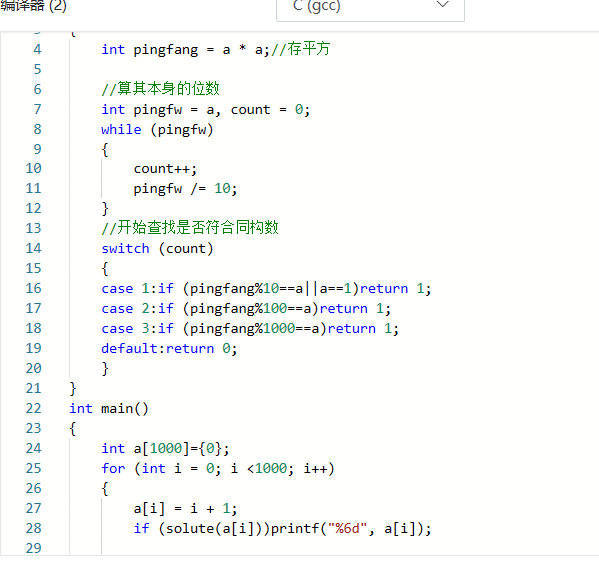 编译错误:开始用一个字母存放同构数,发现不对,后面用函数。