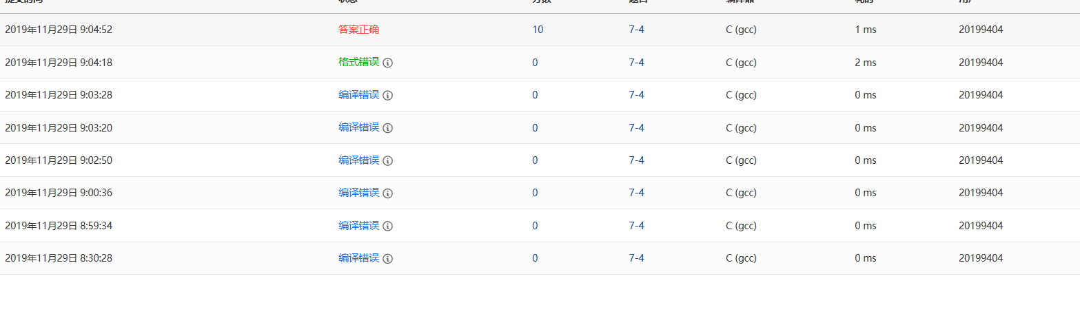 提交列表说明:只有部分错误是在c++中,但在此一并列出。