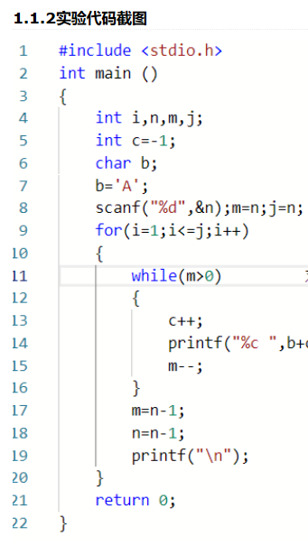 本题要求编写程序,输出n行由大写字母A开始构成的三角形字符阵列。
