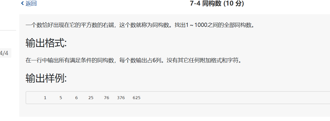 | 1 5 6 25 76 376 625 | 唯一输出 |