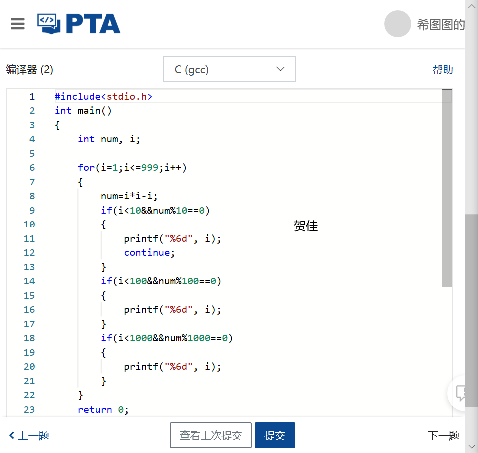 | 这个作业在那个具体方面帮助我实现目标 | pta作业 学习使用循环的嵌套 |