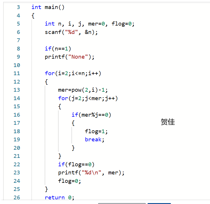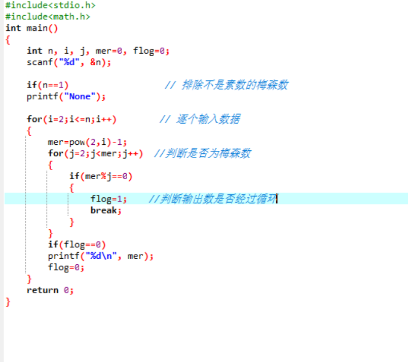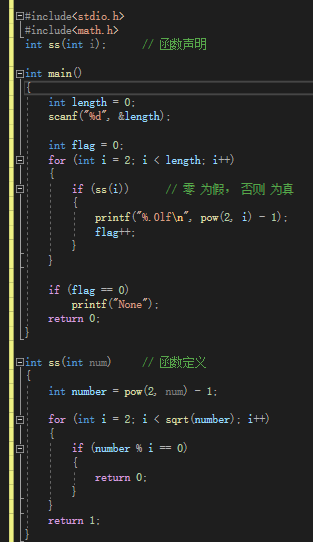 2.同学使用for()语句内嵌if判断梅森数,我使用两个for循环来判断梅森数;