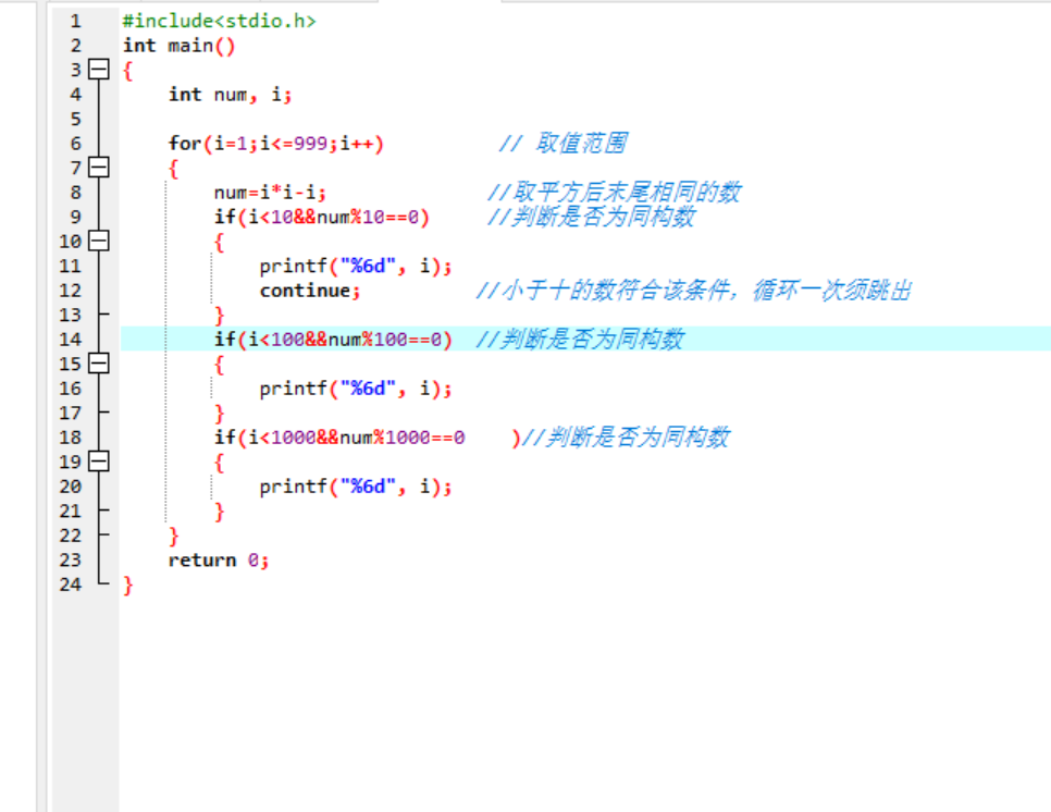 数据表达:使用整形变量num,i;for通过语句赋值得到,num通过运算得到;