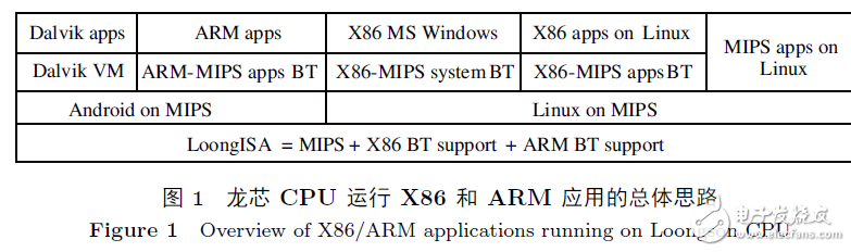 二进制翻译技术是实现跨指令系统兼容的重要手段。 二进制翻译技术在宿主机(host) 上用软件模拟出一个目标机/客户机(guest) 指令系统兼容的CPU 来, 从而在宿主机上执行客户机的二进制代码, 达到兼容的目的。 如在MIPS 计算机上模拟X86 指令系统, 从而实现与X86 兼容。 二进制翻译的最大问题是效率问题, 用软件模拟的CPU 比硬件直接实现的CPU 慢很多。 如在MIPS 计算机上使用二进制翻译的方法运行X86 二进制程序, 比起把该程序直接从源代码编译成MIPS 指令并在MIPS计算机上执行, 运行速度一般有数量级的差异。