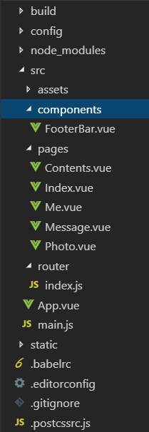目录结构如下,将tabbar封装成FooterBar组件