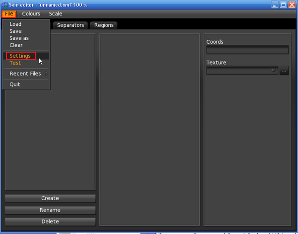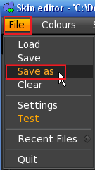 (11)三个皮肤都制作完成后,点击File——>Save as进行保存。存放路径为之前在Setting中设置的路径。将其命名为skin.xml,这里需要注意的是命名时一定要加上后缀名xml。点击”Save“保存: