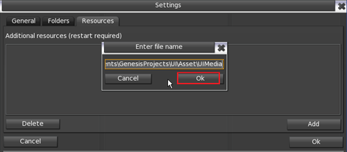 (5) 输入资源路径。这里跟上一环节设置路径不太相同,没有提供文件选择,我们需要手动输入或者复制粘贴该路径:...\GenesisProjects\UI\Asset\UIMedia: