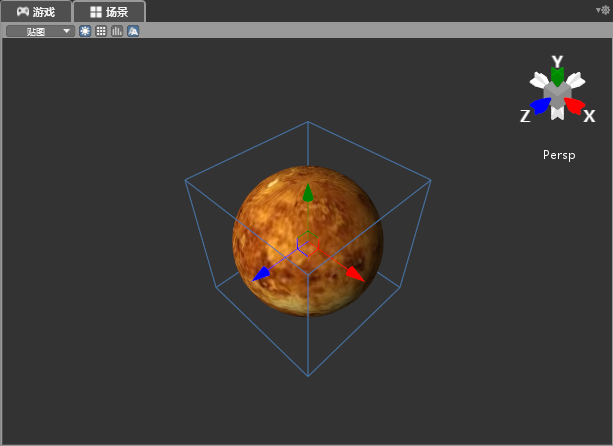 6.发布并运行游戏。在此之前我们应该调整好相机坐标,使画面中的球体居中且大小适合。做好这些我们就点击发布游戏按钮