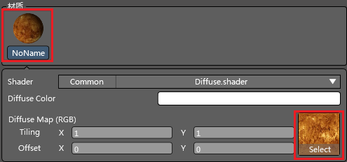 4.为球体贴图。给球体添加材质之后,可以在材质面板中为球体贴图。这里应该注意的是,贴图图片的尺寸,长宽均应为2的n次方倍。挑选好图片之后我们将其导入编辑器