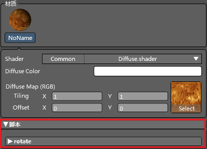 5.为球体添加脚本。想要让这个球体如真实的地球一样转动,我们需要为它添加脚本。