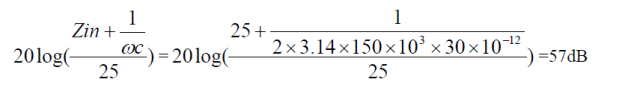 传导发射测试设备内部的去耦网络(LISN)内阻Zin 标准为50Ω。则耦合电容C7 与测试设备去耦网络的内阻Zin 对骚扰电平的衰减为: