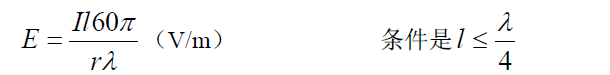 式中,I 是共模电流的大小,r 是到共模电流源的距离, l 是导线的长度,λ是波长。