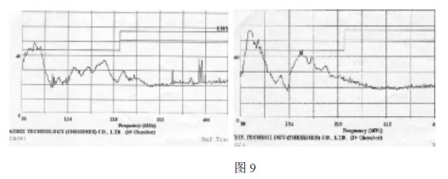 下面图 9 是采取在PFC 开关管散热器对PFC 输出地加电容与不加电容辐射强度的对比。