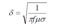 集肤深度δ与材料的性能和频率有关,可用下面的公式表示: