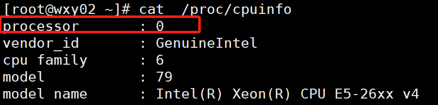 cat /proc/cpuinfo 其中processor表示cpu的核数。从0开始计算,0就是表示核数为1。