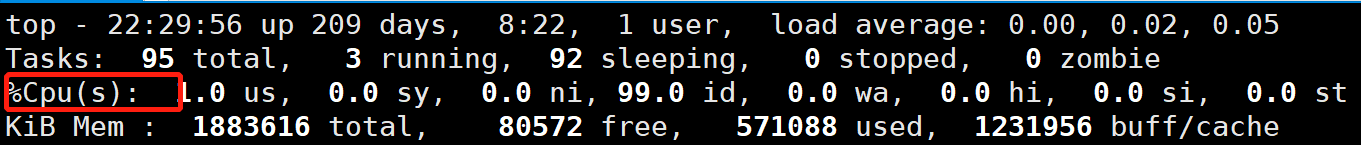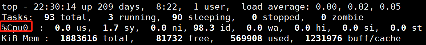 load average:后面3个数字分别代表过去1,5,10分钟内CPU的负载情况。这个数值表示cpu的使用情况,一般来说只要不超过cpu的核数就是正常的