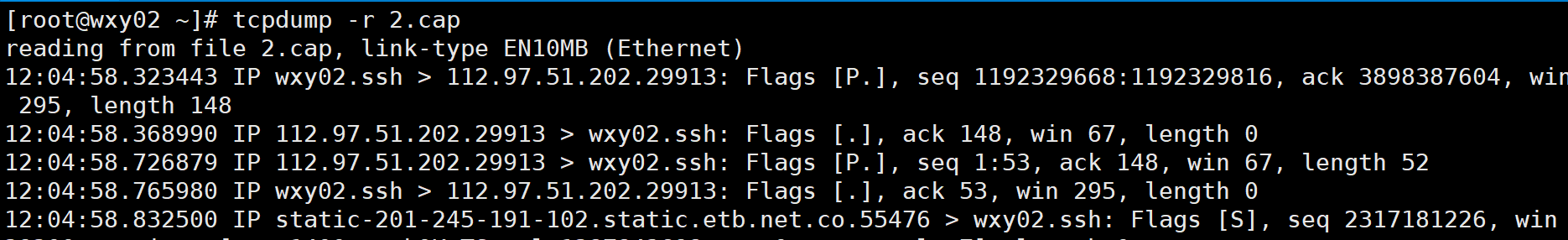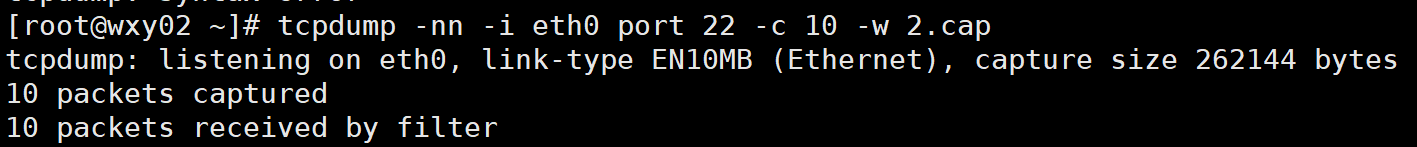 tcpdump -nn -i eth0 port 22 -c 10 -w 2.cap-c:指定统计多少流量包