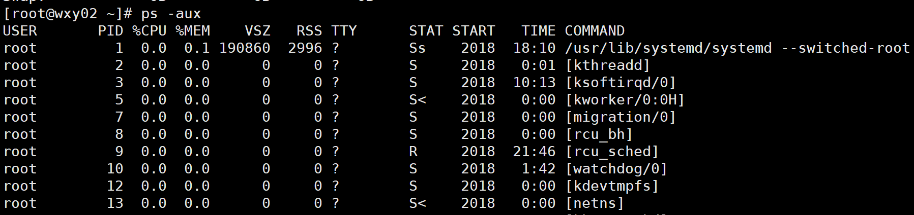 信息 说明 21:51:33 表示当前时间 up 209 days 表示系统运行时间为209天 1 users 表示当前登录用户个数,可以通过下面 USER行 查看当前的用户 TTY 登录的方式 pts/0 表示网络登录 如果为tty1-6 则是终端登录 LOGIN@ 表示用户登录时间 IDLE 表示用户空闲时间 FROM 用户登录的ip JCPU 该终端相关进程任务所耗费的时间 PCPU 表示WHAT或任务执行后耗费的CPU时间 WHAT 表示当前执行的任务 -